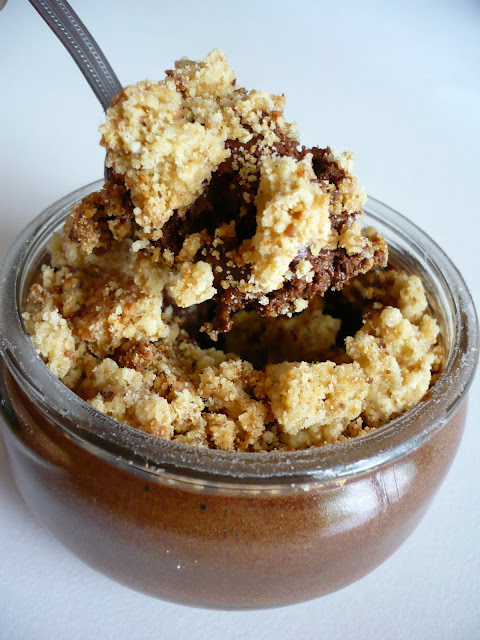 Mais pour une fois, j’ai voulu changer légèrement, en ajoutant un peu de chocolat au lait, histoire de voir ce que ça pouvait donner, d’autant que je sais que certains de mes amis ne sont pas fans de mousse au chocolat noir car ils trouvent cela trop fort. Et puis je voulais aussi élaborer une recette un peu plus original, et là m’est venue l’idée d’un crumble ! Hop, c’était parti !