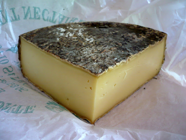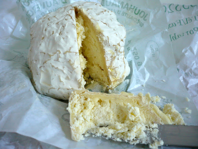 Et enfin, le Gaperon : un fromage généralement de vache, mais j’ai lu qu’il pouvait être aussi de chèvre, à l’ail et au poivre. C’est un fromage piquant. Celui que j’ai ramené est vraiment fort, je n’ai pas réussi à voir à partir de quel lait il est fait, mais je pense que c’est du chèvre. Ou alors il est très surprenant pour un fromage au lait de vache ! Il a une texture ressemblant un peu à celle des fromages à tartiner à l’ail et aux fines herbes en son milieu, avec un pourtour plus crémeux.