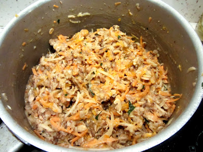 2. Quand le lait a été absorbé, retirez du feu et ajoutez la farine puis les œufs, le fromage, les légumes râpés, le persil, le sel et le poivre. Mélangez bien.