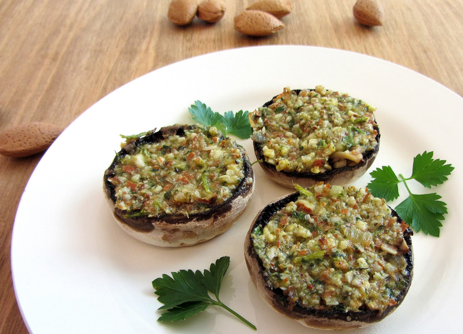 Ooh, dea amandes, je prends ! Ca nous changera des champignons farcis au souflé au fromge (c'est super bon aussi cela dit !)
