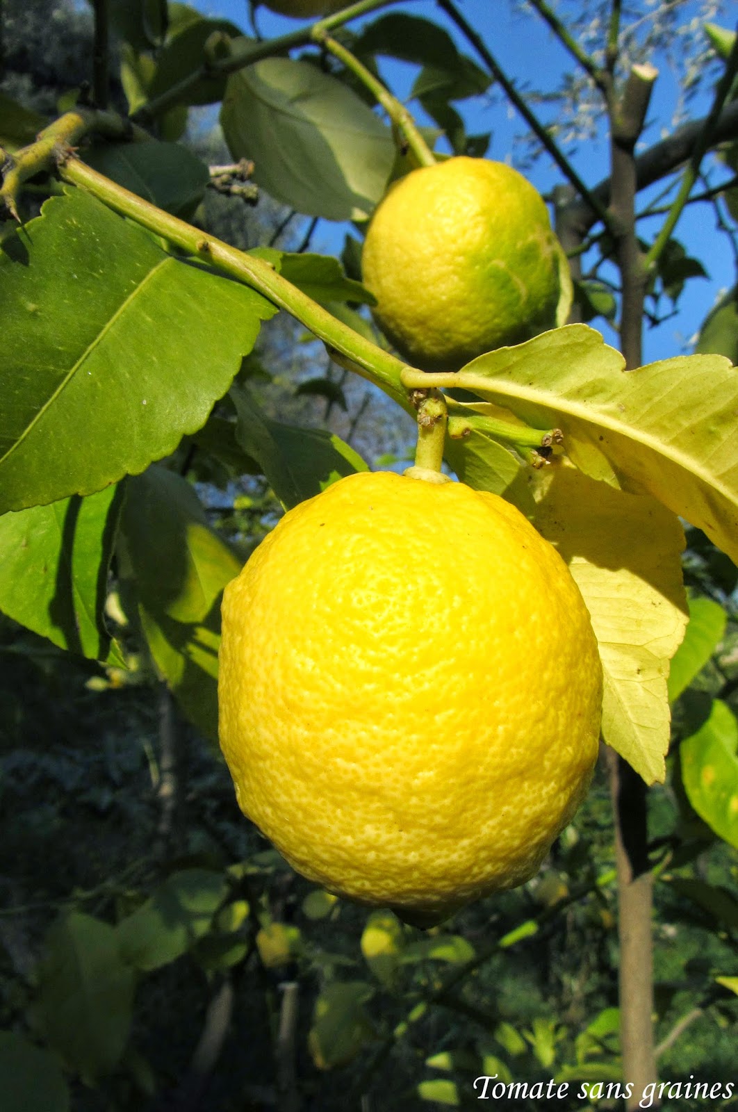 Je vous offre un peu de soleil avec ce magnifique citron du jardin de Pôpa et un beau ciel bleu en fond !