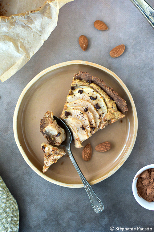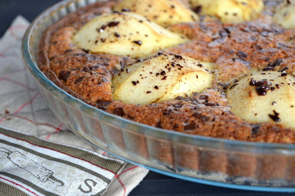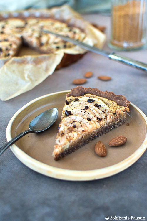 Tarte Bourdaloue (ou amandine) poire-chocolat, végane et sans gluten