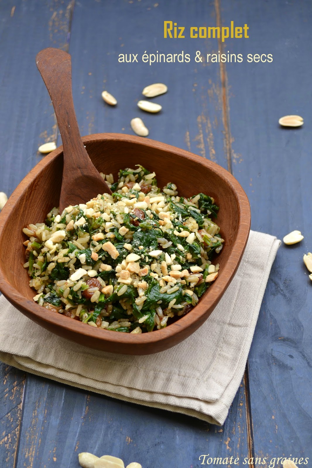 L’association épinards-raisins secs – déjà utilisée ici – fonctionne bien et se marie parfaitement au riz complet, dont j’ai énuméré les vertus lors d’une précédente recette, pour ceux et celles que ça intéresserait. 🙂