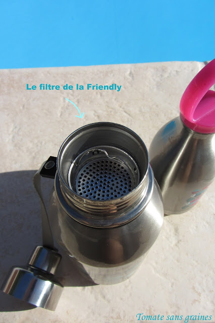 ➽ Le bouchon de la gourde Friendly isotherme relié à la cordelette n’est pas très pratique : 1) pour boire car on ne peut pas poser le bouchon ou le garder à la main pendant que l’on boit et du coup, ce dernier a tendance à cogner contre la bouteille ; 2) à visser/dévisser, car la cordelette est un peu gênante. Ceci étant, au moins, on ne risque pas de le perdre. 😉