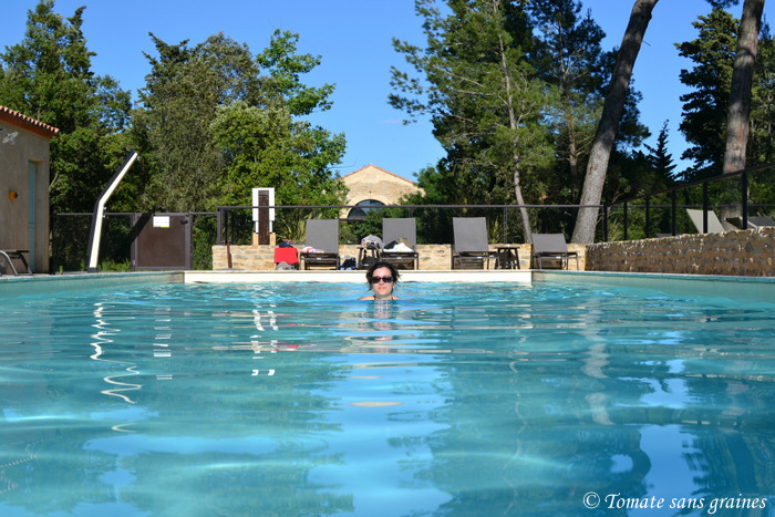 Et là, j’ai gardé le meilleur pour la fin. La cerise sur le gâteau, et même la double dose de chantilly qui va avec : la piscine. Bon, elle est chauffée, ce n’est pas écolo et donc pas dans mes habitudes, je sais, mea culpa… Mais c’était juste le rêve ! Une magnifique piscine de 20 mètres de long à l’eau bien chaude rien que pour nous ou presque ! Nous n’y avons en effet croisé que peu de monde et avons ainsi pu pleinement en profiter ! Un vrai bonheur. Oui, je suis faible, je n’ai pas su résister à la tentation… mais comme j’ai déjà pu le dire, ce n’est pas parce qu’on s’autorise une fois toutes les morts d’évêques quelque chose qui ne correspond pas forcément à notre éthique que cela fait de nous quelqu’un de « vilain-pas-beau-peu-recommandable »… si ? Personne n’est parfait et ça fait du bien de temps en temps de lâcher prise ! 😏 Et puis, la piscine était de toute façon là, et je peux vous dire qu’après une journée de marche (aïe les pieds !) avec sac au dos et appareil photo en bandoulière qui vous détruisent épaules et cou, ça fait un bien fou ! ^^