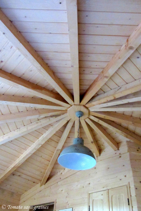 S’il y a tant de commodités, c’est parce que cette cabane constitue avec 22 autres un hôtel trois étoiles… insolite, je vous l’accorde, mais c’est bien là tout l’intérêt du lieu, sinon je ne m’y serais pas intéressée. 😉 Alors, je n’y suis personnellement pas allée pour le confort, je ne m’attendais pas à avoir la télé par exemple (que je n’ai d’ailleurs pas regardée ^^), mais bien pour l’aspect « nature » du concept. L’idée de dormir dans une cabane dans les bois me plaisait beaucoup et j’avais ainsi envie de tenter l’expérience. Mais je dois bien admettre que cela avait aussi un côté rassurant de savoir que je n’allais pas vivre à la Robinson Crusoé ! ^^ Au contraire, j’avais l’impression d’être comme dans un cocon, sentiment que la forme ronde de notre cabane et la structure de son plafond accentuaient. Ces cabanes ont toutefois été construites dans un esprit de développement durable, et trois d’entre elles sont labellisées « tourisme handicap » , permettant l’accès aux personnes à mobilité réduite.