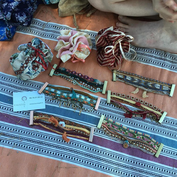 Certaines personnes nous disent que les bracelets que nous portons ma cousine et moi sont super jolis… Il n’en fallait pas plus pour amorcer la discussion sur ses créations ! Car oui, ma cousine fabrique de superbes bracelets avec ses petites mimines, et même qu’elle met plusieurs jours à en faire un seul ! Ce sont des pièces uniques. Et ce n’est pas parce que c’est ma cousine, mais franchement, je les adore. Elle a beaucoup de talent. Elle vient d’ailleurs de créer une page Facebook dédiée à ses créations, qu’elle vend : Bijoux Touk’ par Océane Faustin. Très intéressées et voulant aider Océane, Samia et la jolie Manon se proposent de faire une mini séance photo des bracelets qu’Océane a apportés : Samia endossera le rôle de photographe et Manon celui de mannequin de poignet ! 😉 Elles sont pleines de bonnes idées pour mettre en valeur les bracelets.