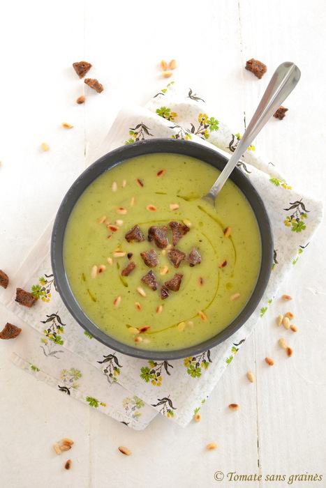 En ce moment, je mange des courgettes matin, midi et soir. Vrai de vrai. Bon… sauf pour le matin. 😉 Mais sinon c’est vrai ! ^^ Ce velouté par exemple, m’a duré trois jours, et j’avais également réalisé au même moment une quiche aux courgettes… qui m’a duré tout aussi longtemps ! 😉 Je dois dire que j’étais seule à la maison, ce qui explique un peu la chose. ^^ Et là, ce midi j’ai fait des beignets de fleurs de courgettes (dont je vous donnerai bientôt la recette), et ce soir ce sera… des pâtes sans gluten avec courgettes sautées à l’ail ! ^^