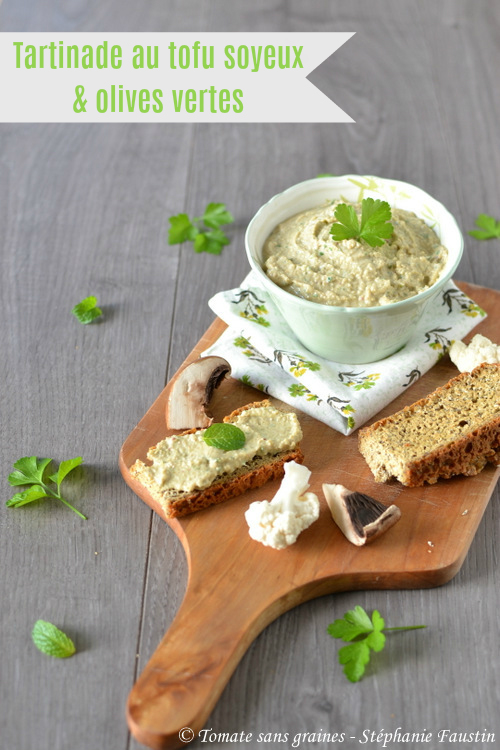 Et pour en revenir à nos moutons, je vous propose donc une nouvelle recette : une tartinade au tofu soyeux et aux olives vertes. Avec le retour des beaux jours, c’est également le retour des mets froids, dégustés sur le pouce, des apéros entre amis… À la fois simple, goûteuse et originale, cette crème aux olives vertes pourra se déguster aussi bien sous forme de dip, avec des crudités ou des champignons à tremper dedans, que tartinée sur des toasts ou encore dans un sandwich, avec des légumes de saison. 😃