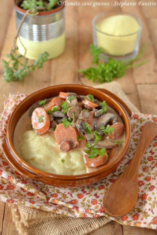 Champignons, carottes et poireaux, le tout bien imprégné de crème, de quoi agrémenter la polenta, qui pour nous était à base de semoule de maïs.