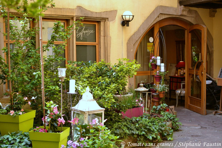 La Libellule est un café-librairie que j’ai adoré. C’est le genre de lieu que j’aimerais vraiment pouvoir trouver plus souvent… et notamment dans ma ville ! Ce serait trop bien. 😊 Un lieu cosy, fait de récup’, où l’on peut tout à la fois acheter des livres comme dans une librairie classique, et bouquiner (ou pas d’ailleurs ! ^^) autour d’un thé ou d’un smoothie accompagné d’une délicieuse tarte à la rhubarbe, par exemple. 😉 Sont également proposés petit déjeuner et déjeuner du midi.