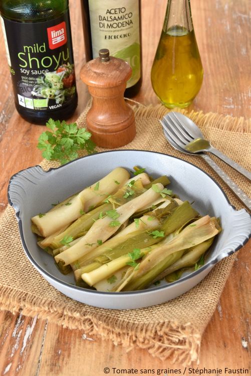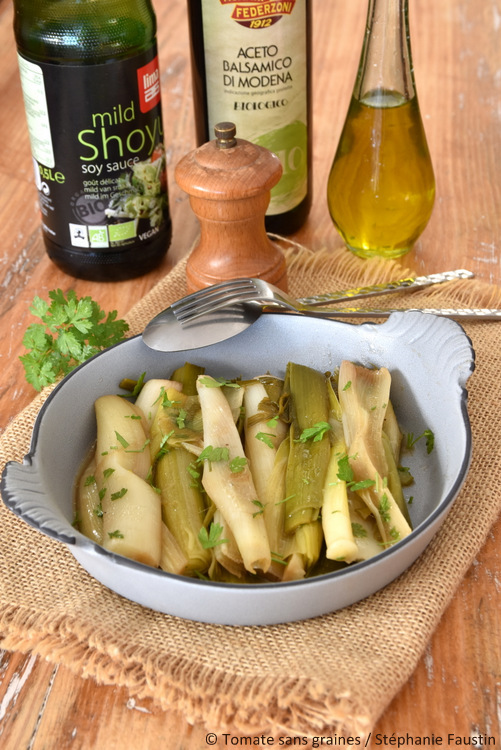 Depuis, j’en réalise régulièrement – c’est tellement simple –, avec une bonne vinaigrette moutardée. Aujourd’hui, je vous propose une variante à la vinaigrette traditionnelle, pour une touche d’originalité. Je fais mariner mes poireaux dans de l’huile d’olive, du vinaigre balsamique et de la sauce soja. Parfois, j’ajoute aussi un petit filet de sirop d’érable… Vous m’en direz des nouvelles !