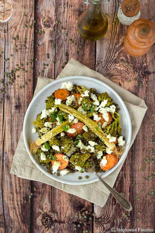 Lentilles du Puy, légumes rôtis et fromage de brebis