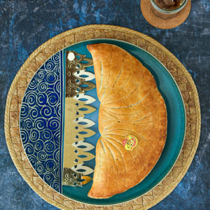 Pour changer de la galette des rois classique, tant sur la forme que sur le fond, je vous propose une version en forme de demi-lune (parfaite quand on est peu nombreux), garnie de crème d’amandes… twistée à la crème de marrons 🌰. À cela s’ajoute du zeste de citron 🍋, qui va rehausser les saveurs.