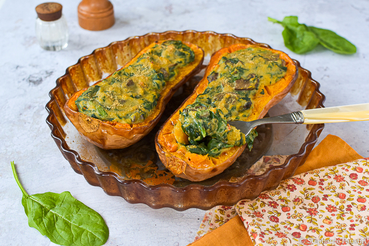 Butternut farcie aux épinards et champignons