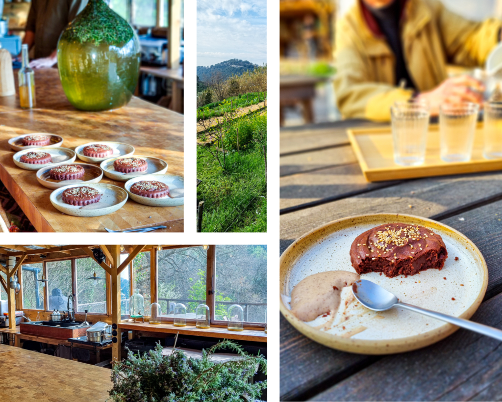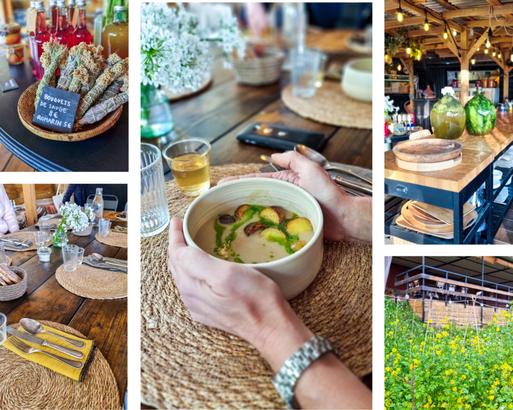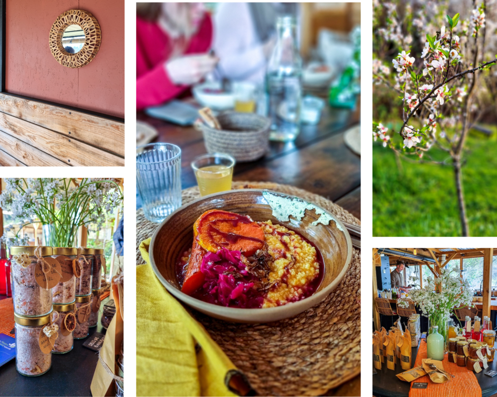 Côté restauration, la cuisine est de saison, colorée, inventive, réalisée avec des produits du jardin, végétale et sans gluten. 🙂 Le chef, qui confectionne son pain sans gluten, est également adepte de la lactofermentation maison. Ainsi nous avons pu goûter à ses pickles de chou rouge ou encore à différents kombuchas, dont un au café, une découverte pour moi !