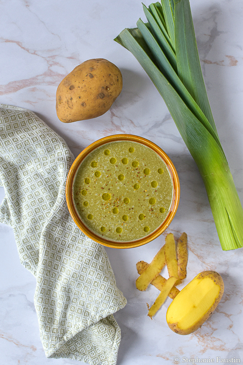 Je vous avoue que je cuisine rarement le vert de poireau séparément du blanc. Mais je sais que beaucoup de personnes ne consomment carrément pas le vert (damn! 😱). Alors je me suis dit que proposer une nouvelle recette à base de ce dernier (voir l’autre recette ici) pourrait peut-être motiver des gens à franchir le pas. 😉