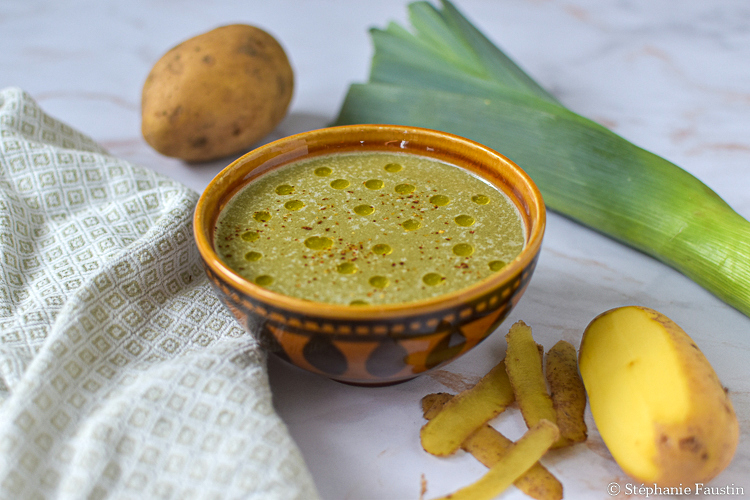 Velouté aux épluchures de pomme de terre et vert de poireau {zéro déchet}