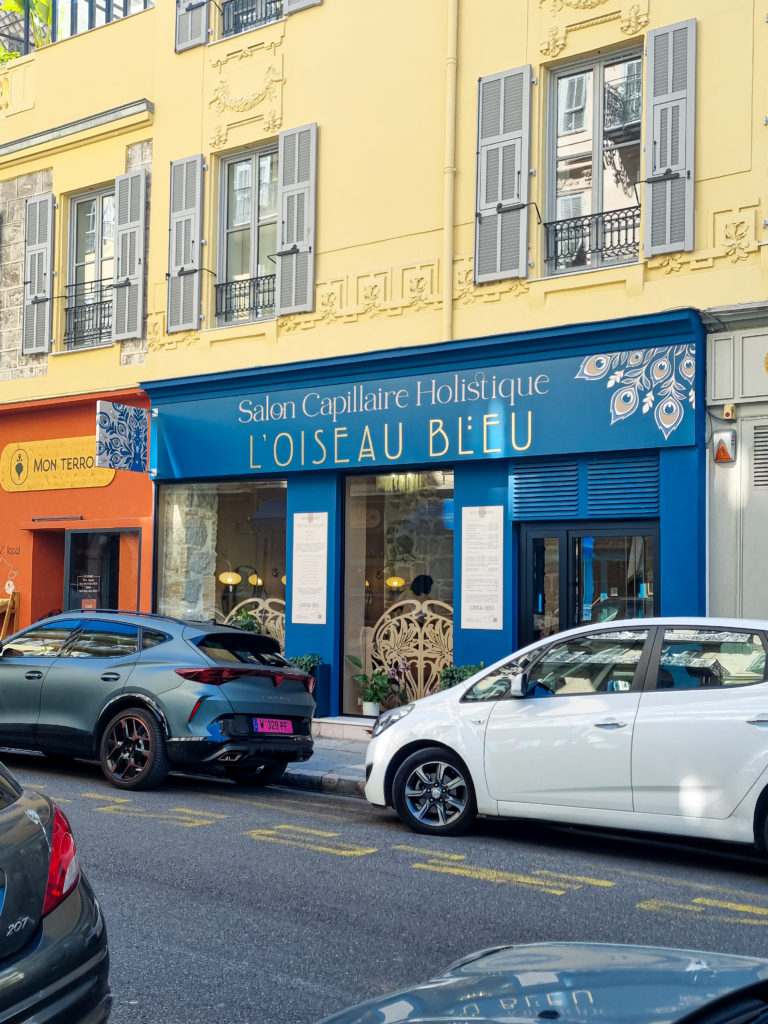 Le salon de coiffure holistique L’Oiseau Bleu à Nice a déménagé en ce début d’année, à quelques numéros de rue seulement de l’ancien salon. Il se trouve donc toujours dans la rue Gubernatis, en plein centre-ville, mais désormais au numéro 9. Un renouveau tout en restant dans la continuité du salon initial, avec un espace beaucoup plus grand, permettant d’offrir plus de prestations. On y retrouve ainsi un décor cosy, mêlant Art nouveau et Art déco, et une ambiance tout aussi chaleureuse qu’avant ! 🙂