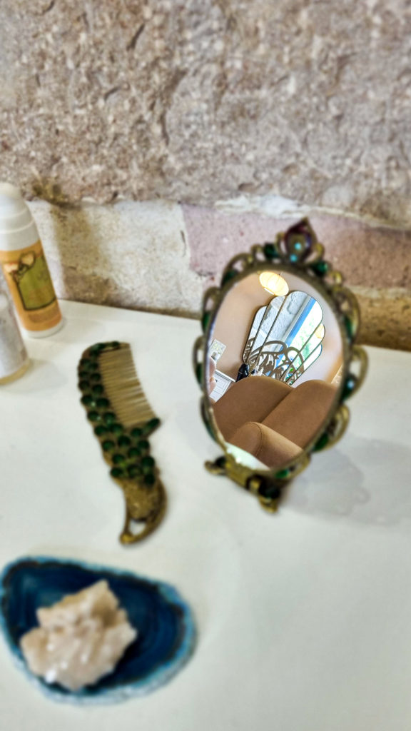 À L’Oiseau Bleu, on ressent une énergie particulière. On vous offre une infusion de plantes, des oracles peuvent être consultés, des pierres diverses sont déposées ici et là pour nous faire profiter de leurs énergies et de leur symbolique… Bref, c’est toute une atmosphère, un écrin de bien-être qui nous enveloppe de bonnes ondes. 🧘♀️