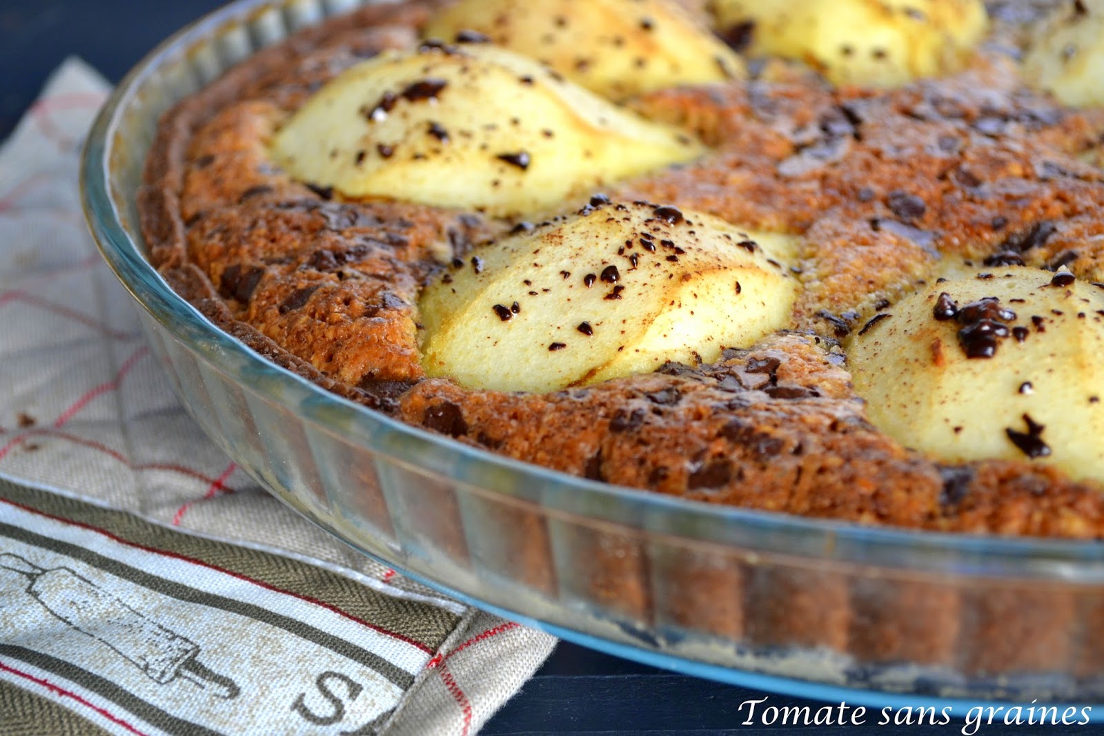 « Ça », c’est une délicieuse tarte aux poires, parce que c’est de saison, aux amandes, parce que ça va bien avec et que c’est bon pour la santé, et au chocolat… euh, faut-il donner une raison pour celui-là ? ^^